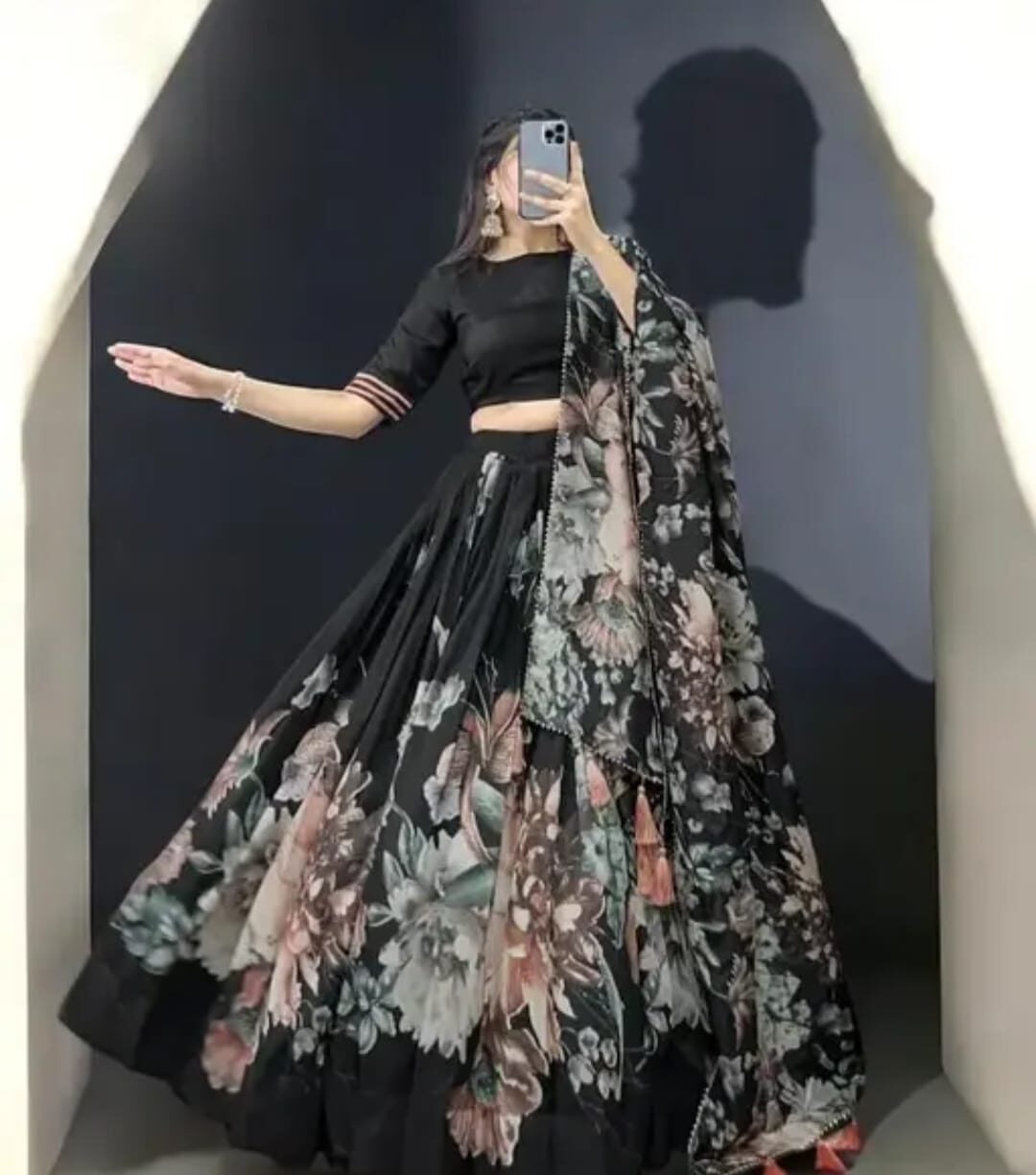 “Black Bloom Floral Lehenga Set – Premium Designer Edition”